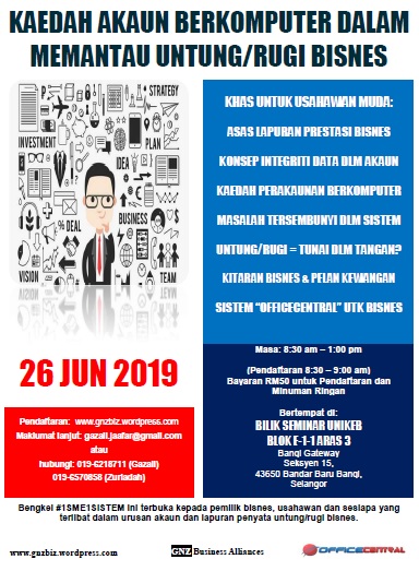 > gnzbiz posted: ” KHAS UNTUK PEMILIK BISNES / USAHAWAN / PENGURUS > PERAKAUNAN Seminar ini khusus buat pemilik bisnes / usahawan dan sesiapa > yang terlibat dalam urusan akaun dan lapuran penyata untung/rugi bisnes. > Ianya diadakan pada 26 Jun 2019 di Bangi Gateway, Bandar ” >
